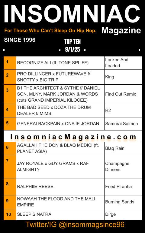 Get ready for the next riveting edition of pure, unadulterated audio ambiance. Making selections is always a laborious and painstaking process, but alas, it’s here. Dig in and savor the craftsmanship on each pick on this week’s edition of Insomniac Magazine’s Weekly Hip Hop Top Ten.