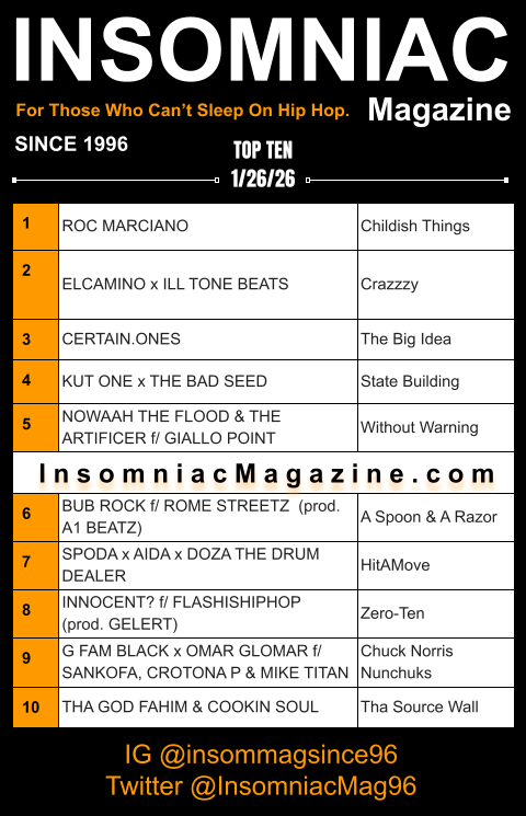 Step through aural portal as we catapult you into a parallel universe where underground sounds reign supreme! Unlike mainstream rap, this is a journey through razor flows, knocking speaker aesthetics and the unfiltered essence of the culture. Brace yourself for Insomniac Magazine’s Weekly Hip Hop Top Ten!