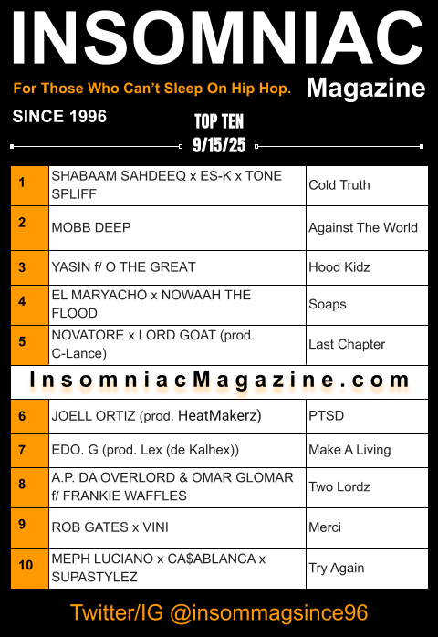 The tradition returns for another curation of audio jewels brought to you through obsessive listening sessions and late-night deep dives into the subterranean realms to unearth authentic auditory alchemy. Let the pure unadulterated stylistics roll with another edition of Insomniac Magazine’s Weekly Hip Hop Top Ten.